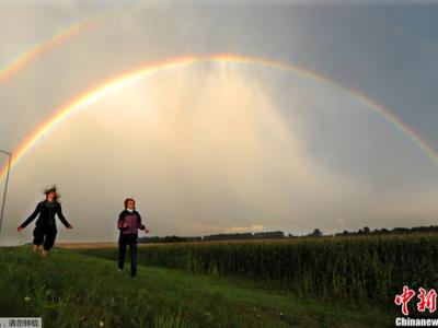 白俄罗斯明斯克小镇雨后“双彩虹”