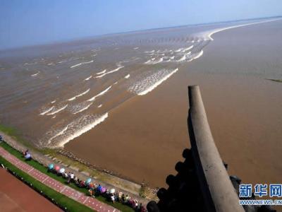 昨日下午3时,萧山闻堰观潮点,出现罕见的“丁字潮”景观。 这是8月19日从浙江...