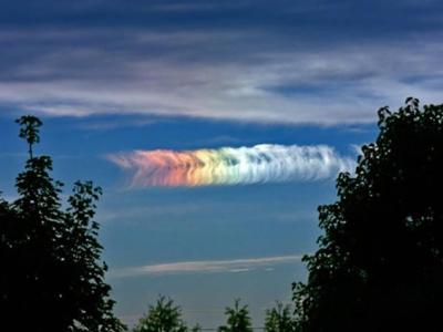 天空中拥有缤纷颜色的云朵是幻日现象所致,幻日现象让云朵增添不少美丽的色彩 大...