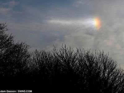 摄影师在英国怀特岛上空拍摄到罕见的冰彩虹现象,使人们认为这可能是UFO目击事件...