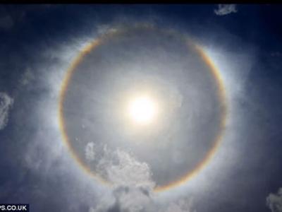 英国伯恩茅斯海滩上空出现壮观幻日光晕 英国伯恩茅斯海滩上空出现壮观幻日光晕...