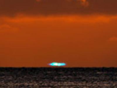 日本冲绳海平面日落时分出现神秘绿光 据日本《朝日新闻》消息,日本冲绳县石...
