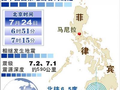 棉兰老岛附近海域相继发生7.2、7.1级地震