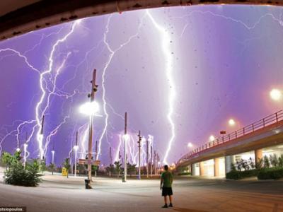 在这张惊人的照片中,业余摄影师克里斯-科特西奥普罗斯正站在这片茂密的“闪电森...