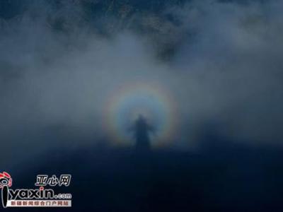 在“佛光”中,人都影子都可以看到,几位目击者摆出千手观音的姿势投射到“佛光”...