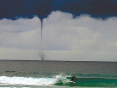 5月17日,澳大利亚悉尼海滩水面上出现龙吸水(发生在水面上的龙卷风)的奇特景象...