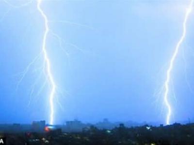 尼泊尔天空出现两道闪电奇观 你见到过两道闪电同时划过天空的景象吗?据英国...