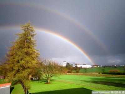 当地时间2010年4月4日,德国Eldagsen村,雨后天空惊现双彩虹。 东方IC