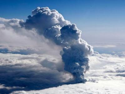 拍摄于14日,冰岛埃亚菲亚德拉冰盖冰川火山喷出的火山灰导致欧洲15日航班取消。(...