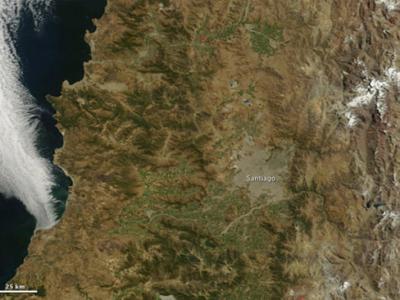 2月23日卫星拍摄的照片显示智利首都上空万里无云 在智利发生地震约8小时后,美...
