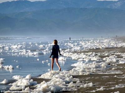 美国加州海岸因海啸出现大量巨大泡沫 美国加州海岸因海啸出现大量巨大泡沫 ...
