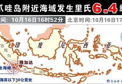 印尼爪哇岛附近海域发生里氏6.4级地震 印度尼西亚气象和...