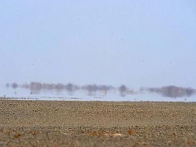 2008年4月17日甘肃酒泉戈壁滩的“海市蜃