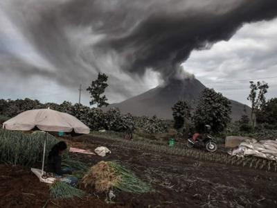 印尼北苏门答腊锡纳朋火山再爆发 火山灰
