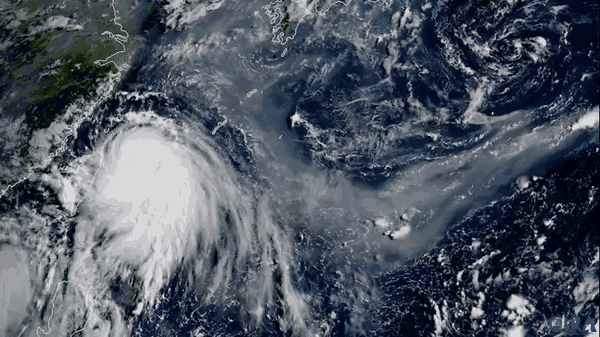 日本气象卫星Himawa -8同时观测到台风“黑格比”和西之岛町上火山喷发(蜘蛛网eeoo...