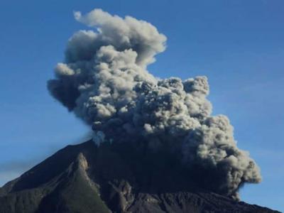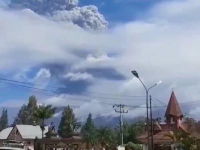 印尼北苏门答腊锡纳朋火山喷发 火山灰冲