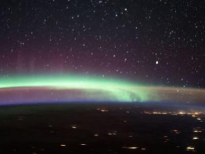 国际空间站宇航员拍摄到地球上空同时出现两种大气现象——北极光和大气层发光(蜘蛛...