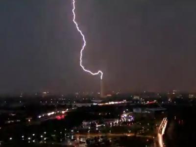 美国首都华盛顿特区的华盛顿纪念碑遭闪电击中 网友笑言国家现...