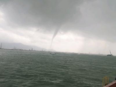 广东东莞沙田镇狮子洋出海口惊现水龙卷