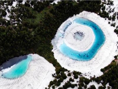 日本岩手县与秋田县之间的八幡平山顶附近镜沼出现“龙之眼”自...