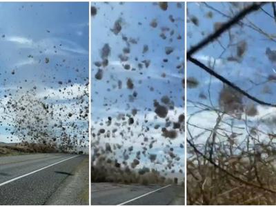 美国华盛顿州记者驾车遇上罕见风滚草“龙卷风”(蜘蛛网eeook...