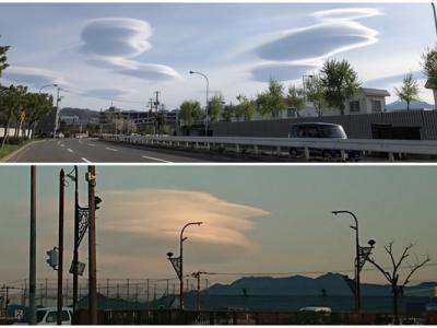 日本北海道札幌市上空突然出现怪云 似外星飞碟在空中列阵(蜘...