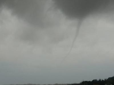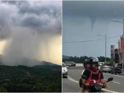 台湾的北海岸上周六下午同时出现雨瀑和水龙卷的奇景。(蜘蛛网...
