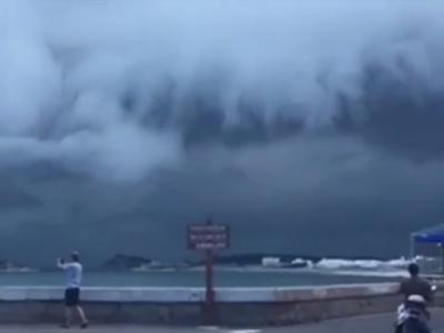 福建漳州市东山县南门湾海堤惊现“海啸云”