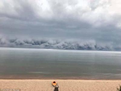 美国密歇根州滩云出现仿如世界末日视频;美国密歇根州滩云出现...
