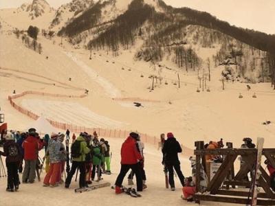 索契滑雪场披上橙雪。有游人形容此情此景如同“世界末日”和“...