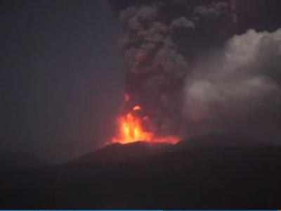 日本鹿儿岛新燃岳火山再喷发 浓雾升至32
