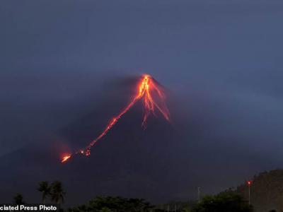 菲律宾马荣火山岩浆喷发 村民形容犹如飞