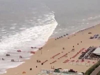 “气象海啸”直冲海滩。专家解释或因强烈雷雨,酿成...