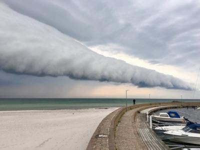 瑞典南部斯堪尼省天空出现奇特“卷滚云”
