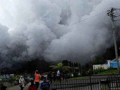 印尼中爪哇省西雷利火山突然喷发 监控直