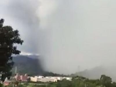 印尼中爪哇省西雷利火山突然喷发,监控直升机撞山2...