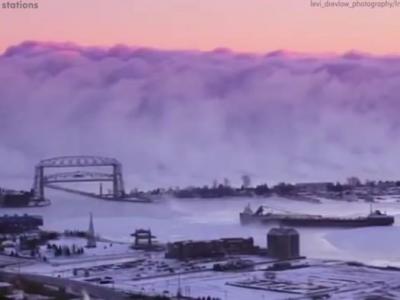 美国明尼苏达州的杜鲁斯港出现罕见“雾墙”(蜘蛛网...
