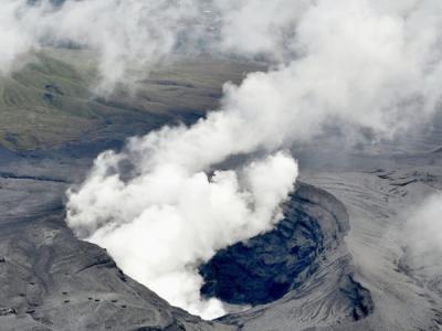 日本九州熊本县阿苏火山喷发 火山灰冲1.
