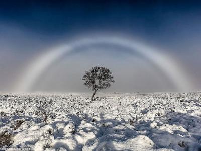 英国苏格兰西部的兰诺赫高地出现罕见白色彩虹 去年10月同样在苏格兰乡村拍摄到...