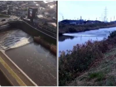 多地因海啸涌至而出现河川逆流。 河川逆流相信因海啸涌至所致。 不少民众拍...