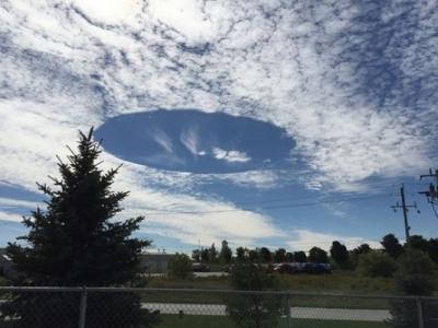 圆洞愈扩愈大,旁有云团围绕。 专家指这是称为“穿洞云”的天文现象 (蜘蛛网...