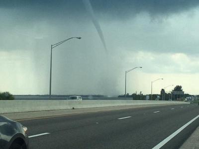 水龙卷高耸入云 一道闪电劈向建筑物 德罗科夫指自己从未见过水龙卷 天空...
