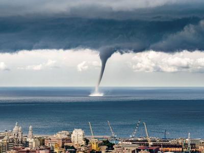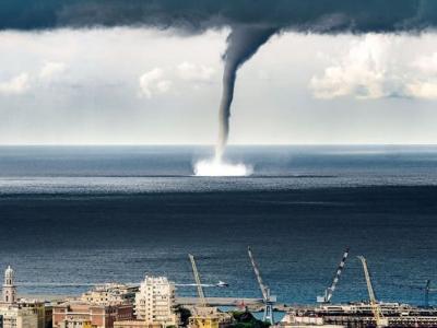 意大利西北部热那亚海湾出现巨大海上龙卷风 当龙卷风接近意大利海岸时,其威力...