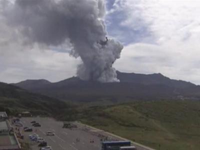 阿苏火山喷发后,当局提升警戒级别。 阿苏火山喷发后,冒出大量火山灰,直上半...