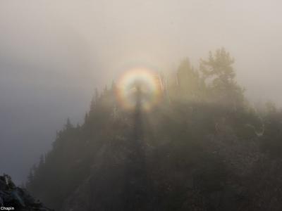 游客在美国瑞尼尔山国家公园内拍摄到“布罗肯幽灵”(Brocken Spectre)“佛光”...