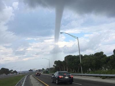 美国佛罗里达州出现大型水龙卷 邮政货车