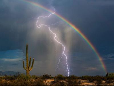 摄影师拍下一生难得一见的场景:闪电和彩虹同一时间在天际出现 (蜘蛛网报道)据...