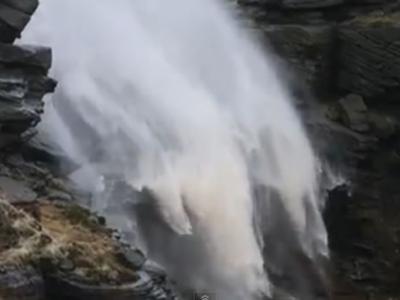 受飓风“贡萨洛”影响英国德比郡一条高达24米的瀑布出现罕见的倒流现象 (蜘蛛网...