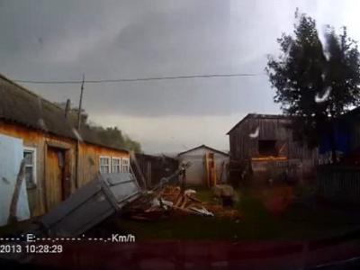 俄罗斯遭龙卷风吹袭 汽车行车记录仪拍下