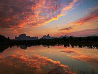 广东的世界自然遗产地丹霞山傍晚天空出现“火烧云”奇景 (蜘蛛网报道)入秋以...